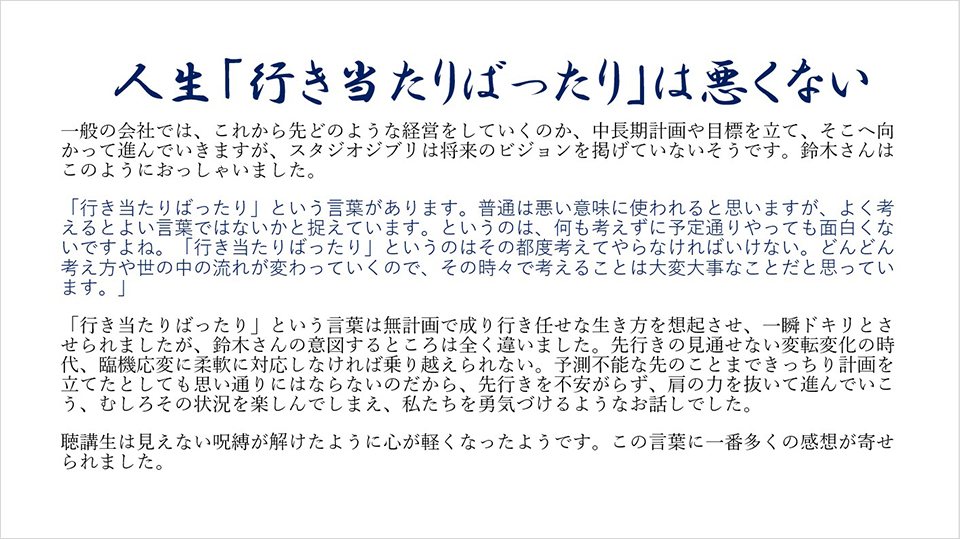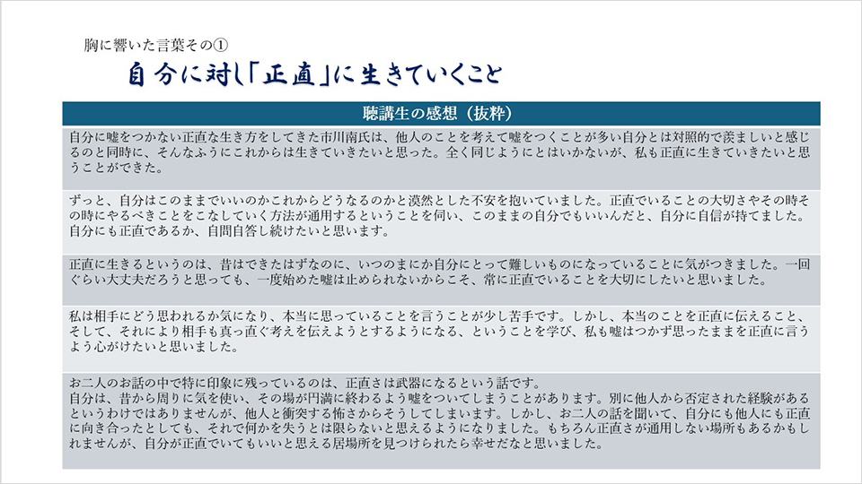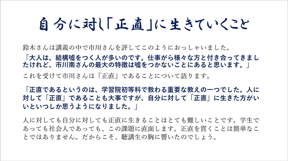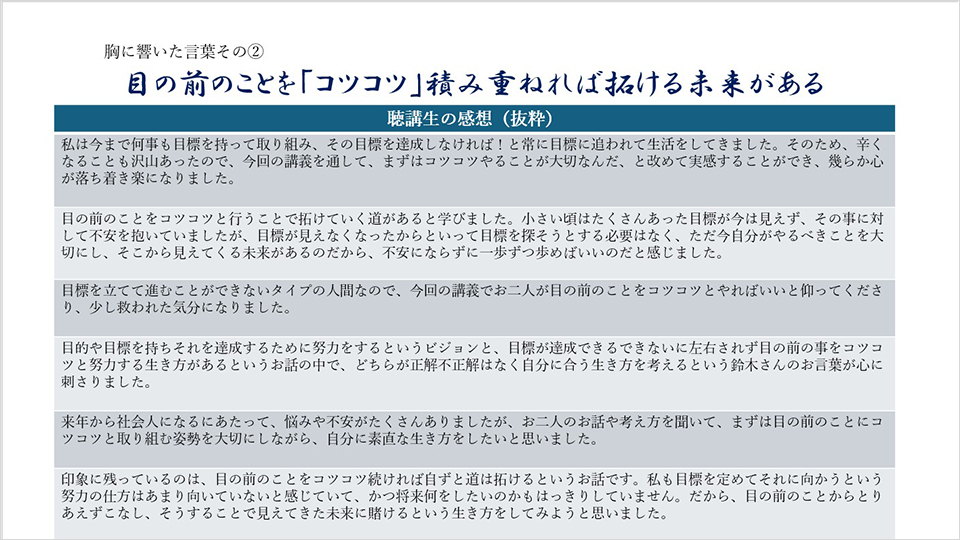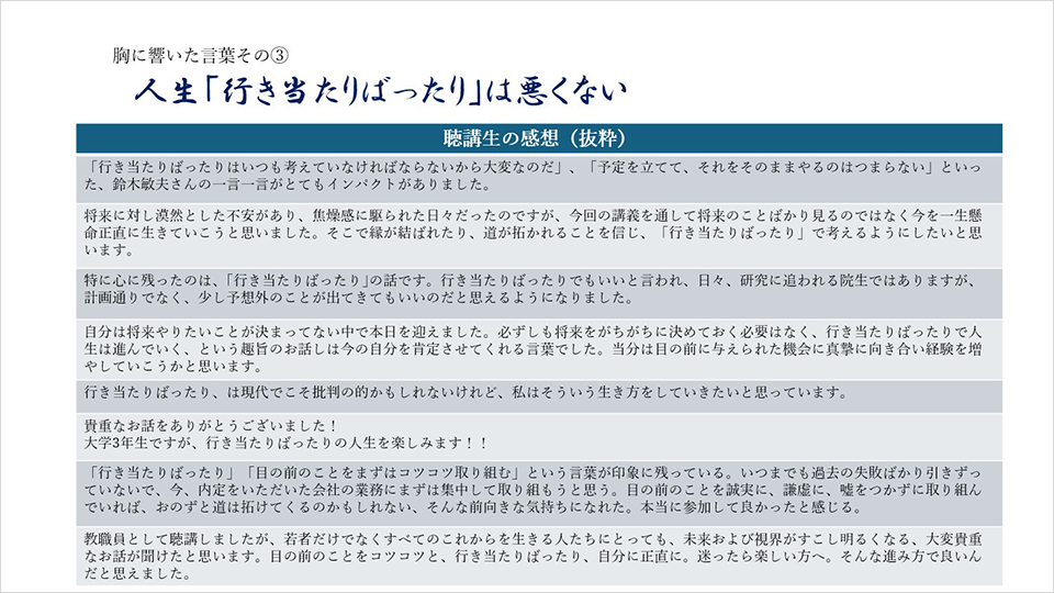 今、改めて特別講義を振り返り、皆さんにも共感いただければ望外の喜びです。